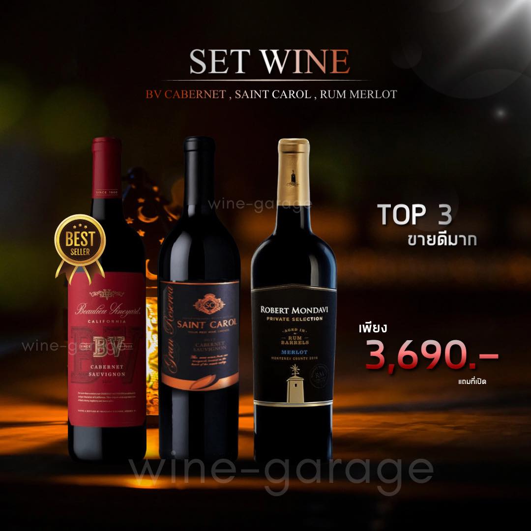SET WINE ประกอบด้วย **BV Cabernet**, **Saint Carol**, และ **Robert Mondavi Private Selection** ที่คัดสรรมาสำหรับผู้ที่หลงใหลการดื่มไวน์อย่างแท้จริง แต่ละขวดนำเสนอรสชาติและอารมณ์ที่แตกต่างกัน โดดเด่นด้วยกลิ่นหอมและรสสัมผัสที่มีมิติ ความเข้มข้นของ BV Cabernet จะทำให้คุณหลงใหลในรสชาติที่แข็งแกร่ง ขณะที่ Saint Carol จะมอบประสบการณ์ที่นุ่มนวลและหอมหวาน และ Robert Mondavi ยังคงรักษาความเป็นมาตรฐานในทุกหยดที่ผลิต เพิ่มความพิเศษให้ค่ำคืนของคุณในราคาเพียง 3,690 บาท เพื่อให้คุณได้สัมผัสกับประสบการณ์การดื่มไวน์ที่ไม่เหมือนใคร! อย่าพลาดโอกาสนี้ในการทำให้ค่ำคืนของคุณกลายเป็นค่ำคืนที่น่าจดจำกันเถอะ!